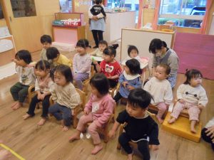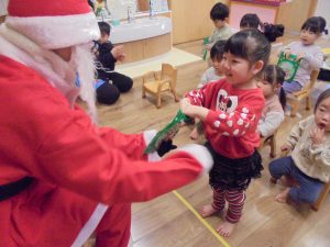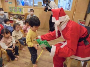 12月生まれのお誕生会とクリスマス会をしました。お誕生日のお友だちには歌のプレゼントをしたり先生からメッセージカードを読んでもらいました。楽しい雰囲気の中で誕生会をしました。そして待ちに待ったサンタさん登場です。驚いて泣いてしまう姿もみられましたが、サンタさんからのプレゼントは喜んで貰っていましたよ🎄💕